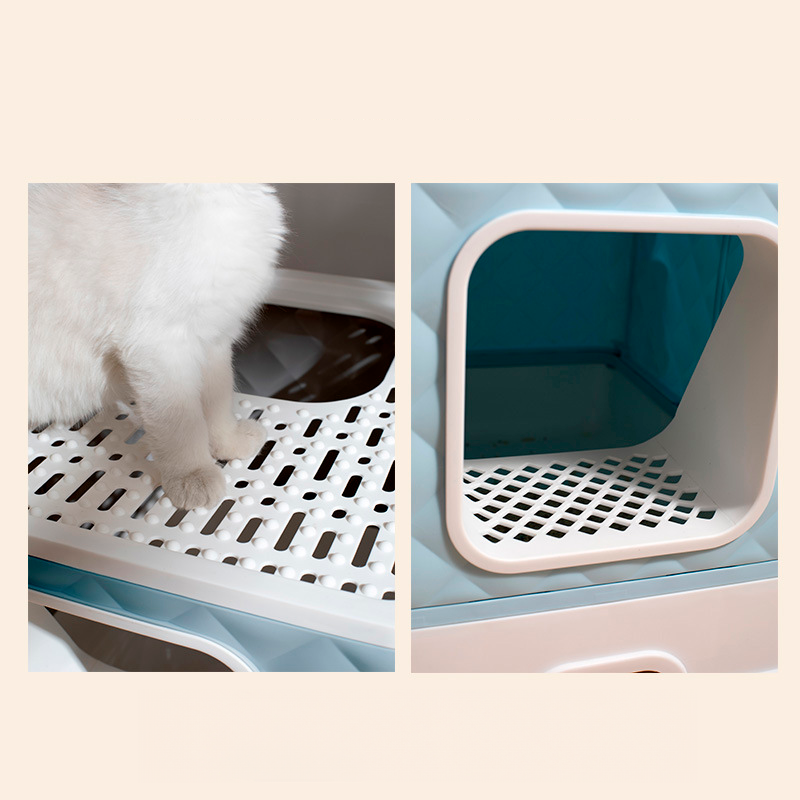 The Closed Cat Litter Box is the ideal solution for keeping your home clean and odor-free. Its extra-large design provides comfort for the feline, while its foldable structure makes it easy to clean. With an anti-spill system, it keeps the surrounding area spotless. Provide more hygiene and practicality for your cat and your home with this innovative litter box.